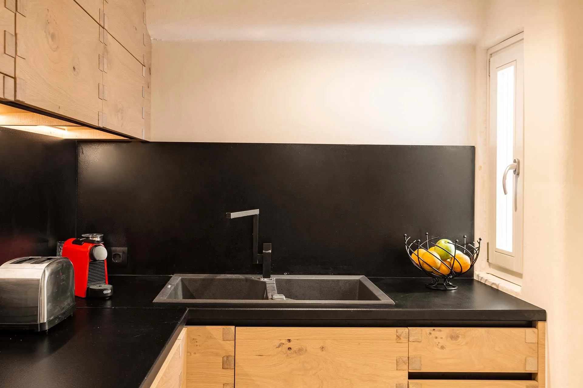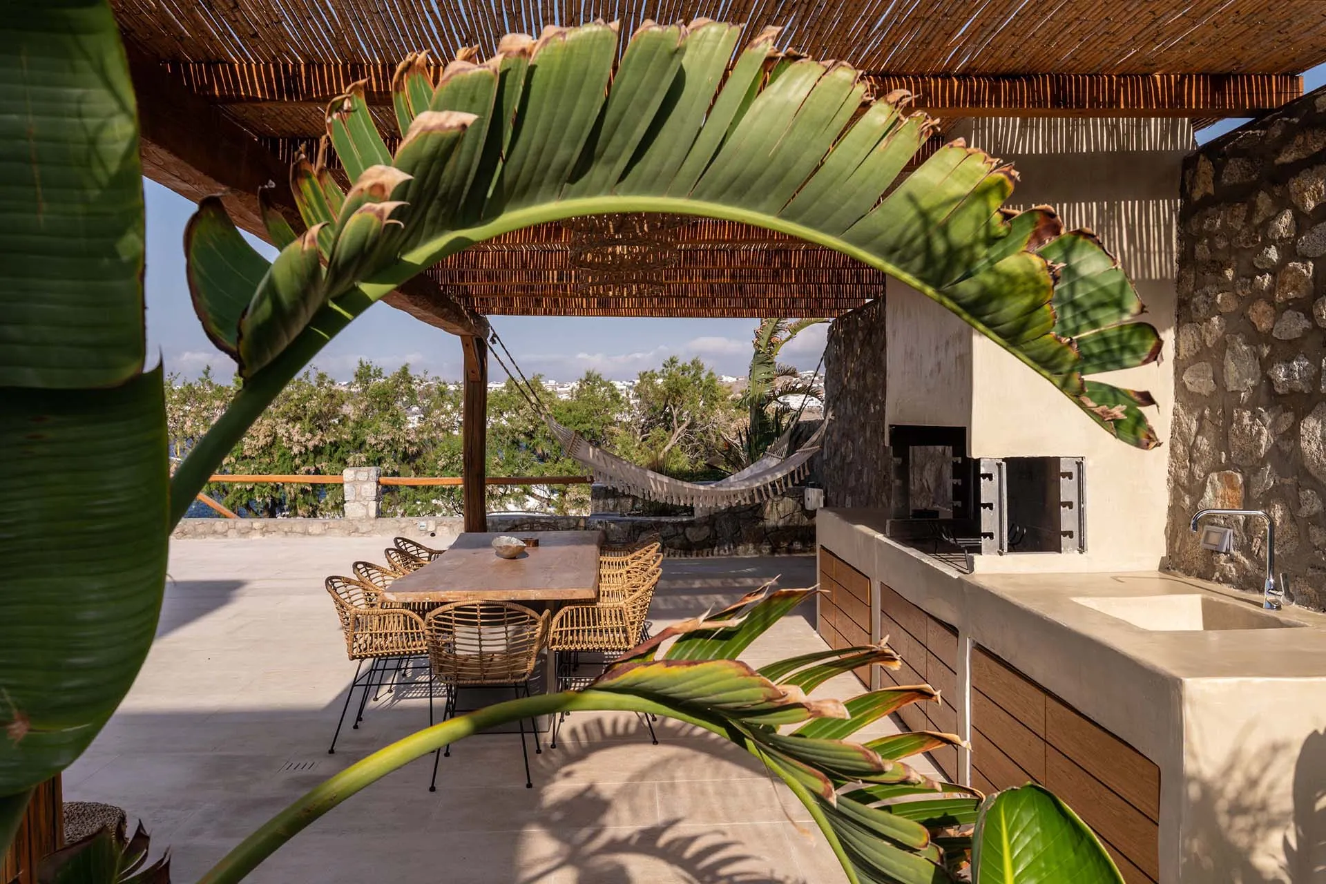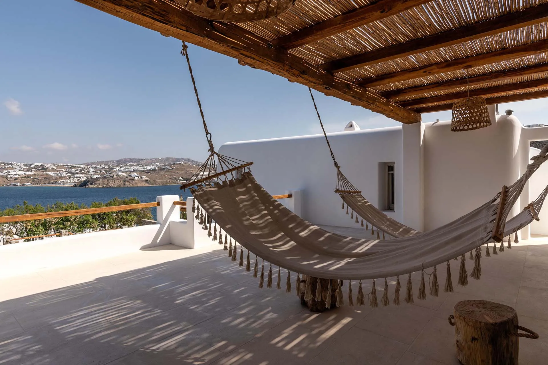 Audrey’s gleaming terrace has literally everything to please even the most discerning guest. Collect the sun on ultra-modern loungers by the kidney-shaped pool and retreat to the built-in bench for some quiet time with that beloved book. A wood-fired BBQ will cater for your Mediterranean feasts at the pergola-shaded dining area, to be followed by the obligatory Greek-style siesta on the hanging hammocks. Don’t forget to take advantage of the outdoor Sonos® sound system; hit the “play” button and enjoy some funky tunes, before you head back in the villa to get ready for a night of endless fun around the cosmopolitan bars of the island.